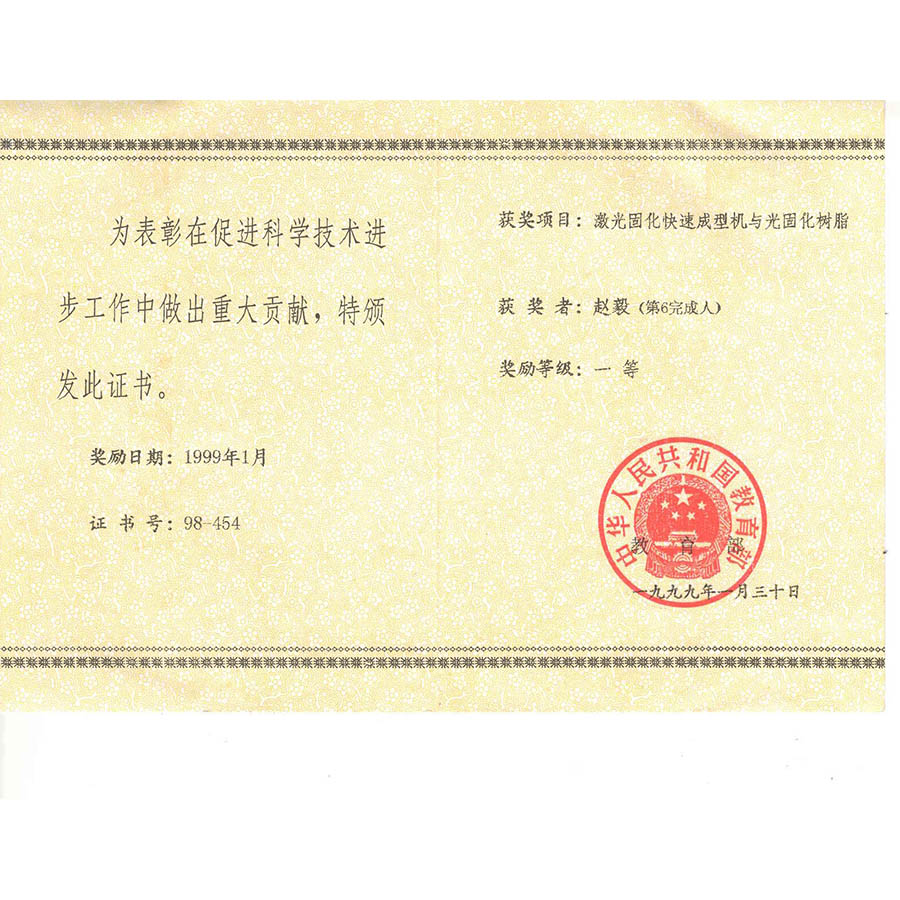 ★ 1998年 趙毅博士獲國家教育部科技成果一等獎
