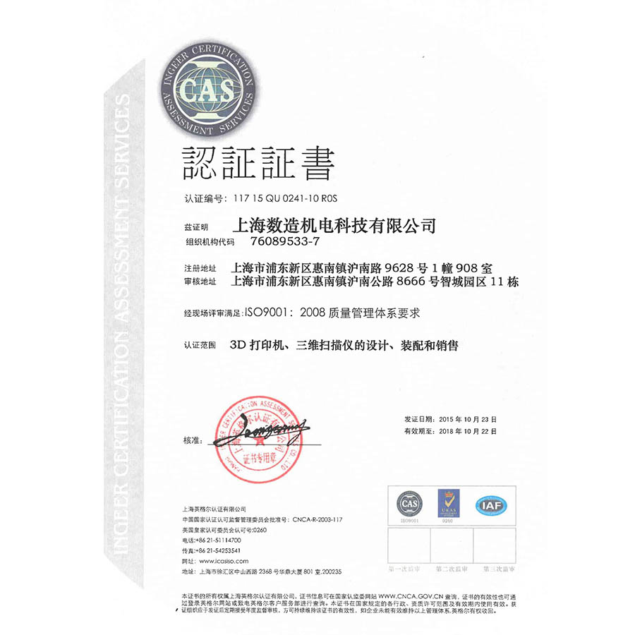 上海數(shù)造機電科技股份有限公司成立于2004年,高新技術(shù)企業(yè),建有院士專家工作站,2016年4月成為全國增材制造標(biāo)準(zhǔn)技術(shù)委員會會員單位,2017年2月登陸新三板,股票代碼:870857。是一家專注于3D打印機、三維掃描儀等高技術(shù)裝備的研發(fā)生產(chǎn)和銷售,以及提供整體解決方案的專業(yè)公司。同時也是美國Stratasys的一級代理商,公司總部位于上海市浦東新區(qū)智城工業(yè)園,并在重慶、天津、寧波、湘潭等多地設(shè)有分公司或辦事處。