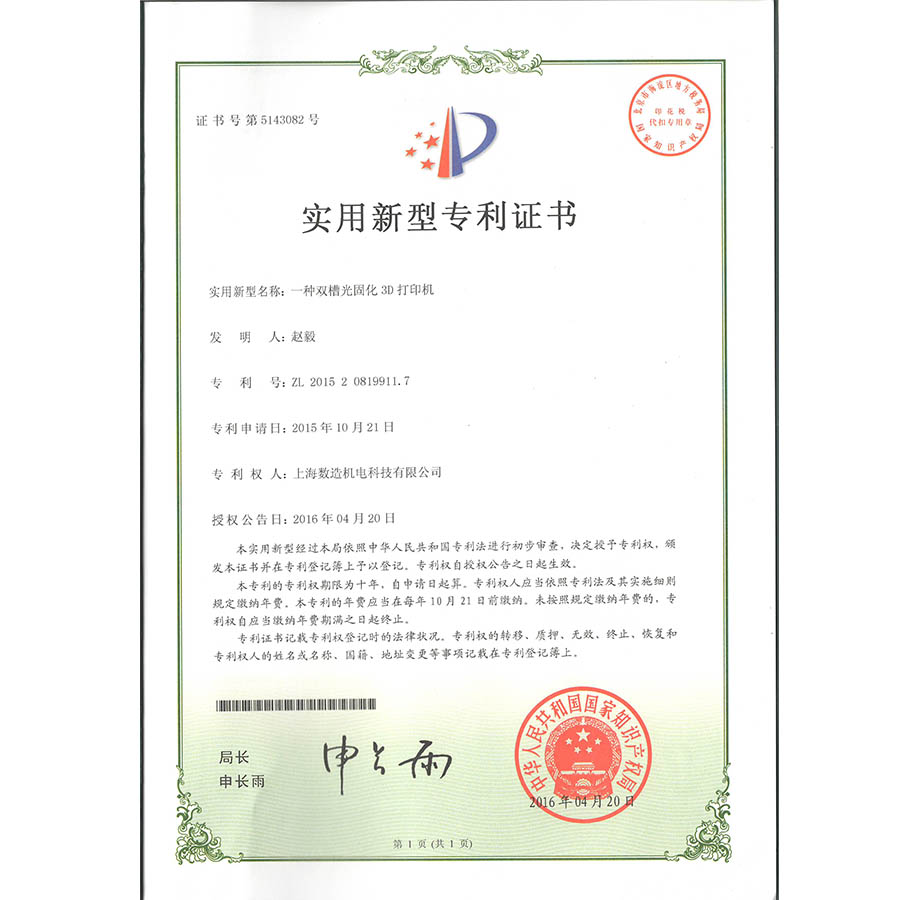 ★ 1997年 公司創(chuàng)始人趙毅博士研發(fā)出光固化3D打印機